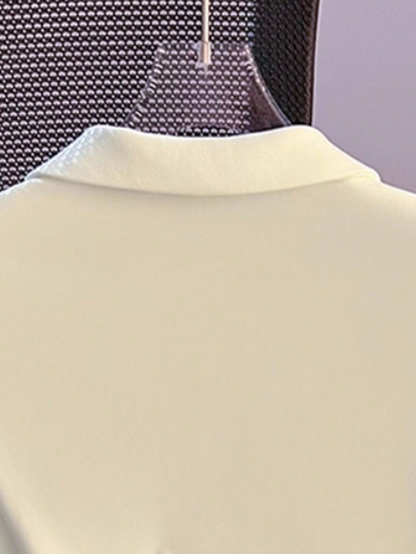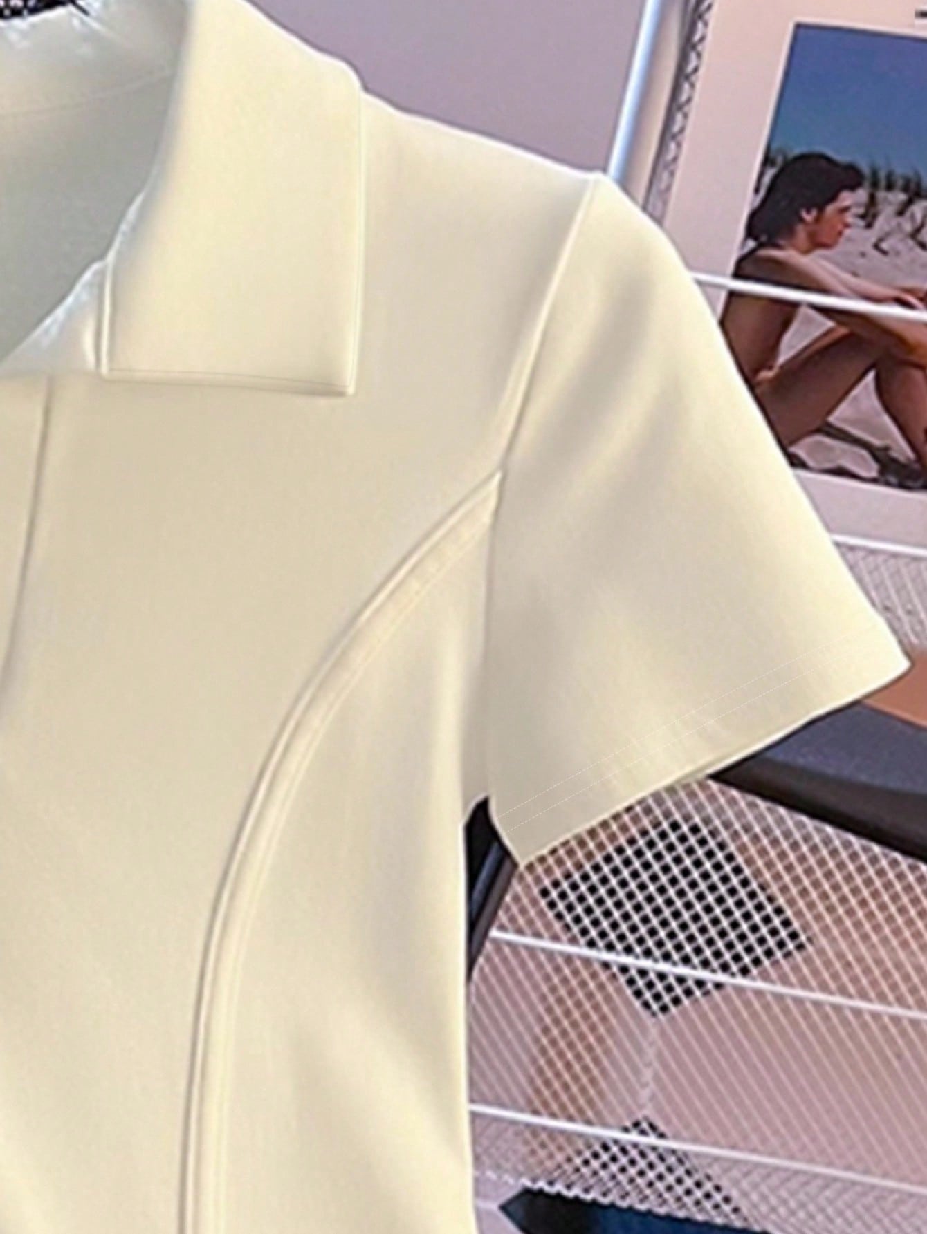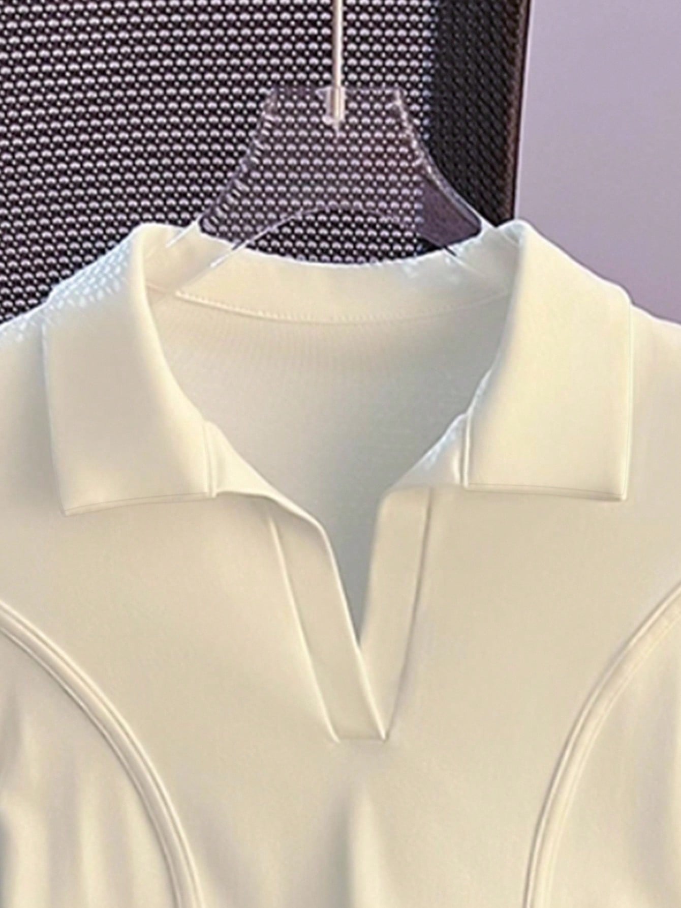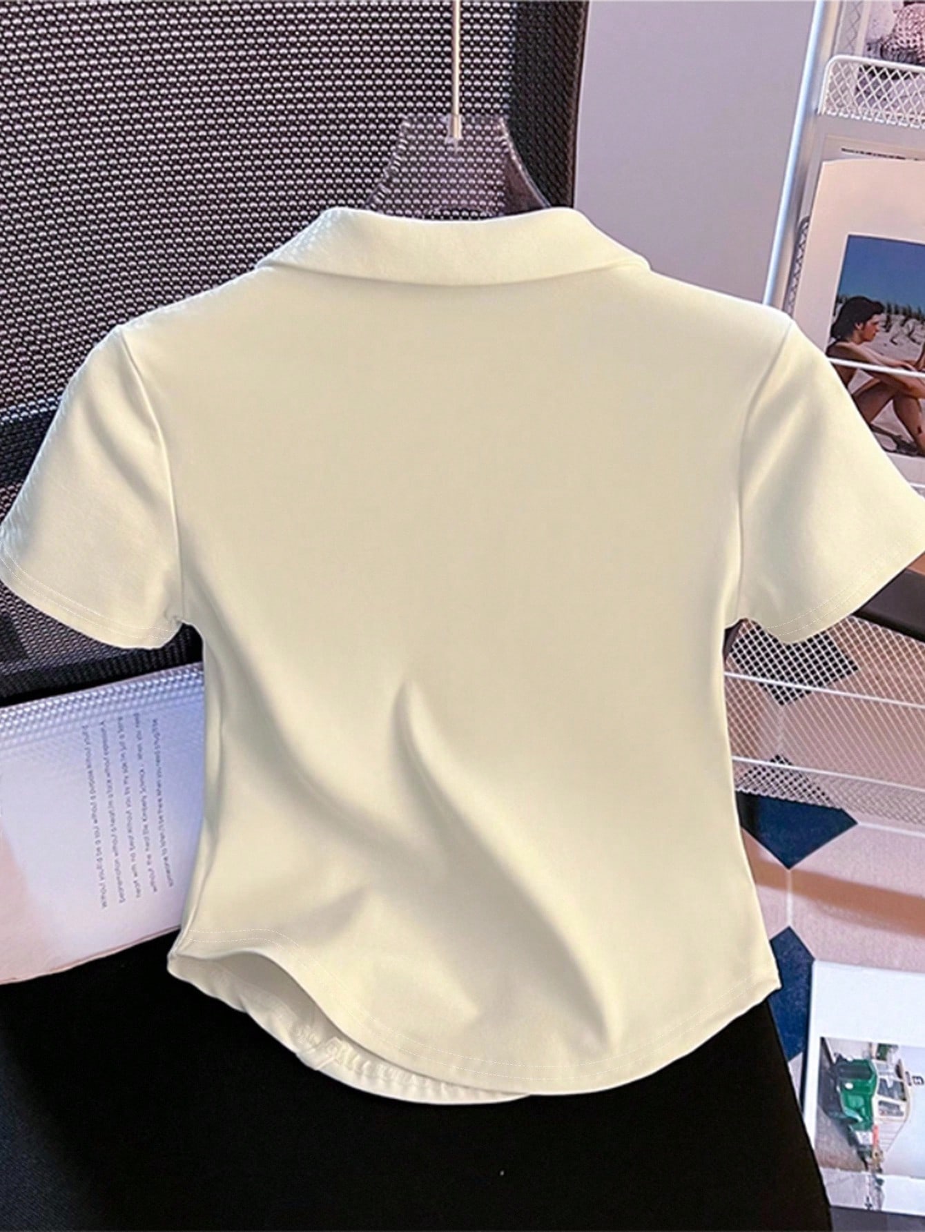 اسم المنتج :ملابس علوية بولو أبيض للنساء، تي شيرت قصير الأكمام، صيفي، ياقة منقلبة، مناسب للجسم، قصير محصور